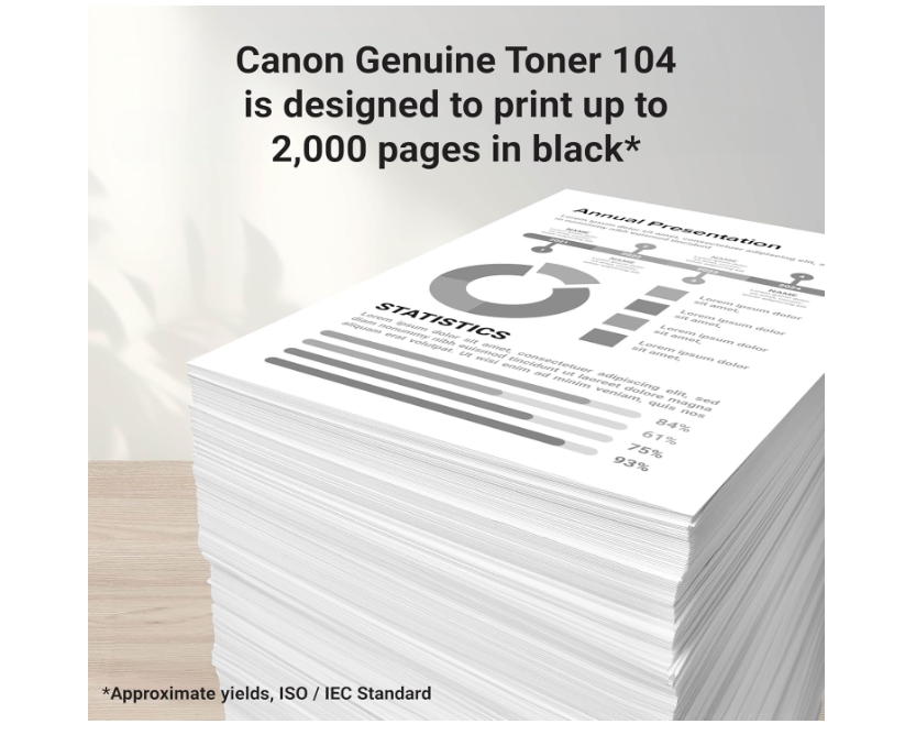 The Canon 104 Standard Yield Black Toner Cartridge delivers sharp, clear prints with deep black tones and reliable performance. With a yield of up to 2,000 pages, it’s perfect for home offices and small businesses. Designed for Canon imageCLASS MF4150, MF4270, MF4690, and Faxphone L120 printers, it ensures smooth operation and professional-quality results every time.